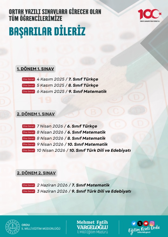 Milli Eğitim Bakanlığı Ortak Yazılı Sınav Tarihleri